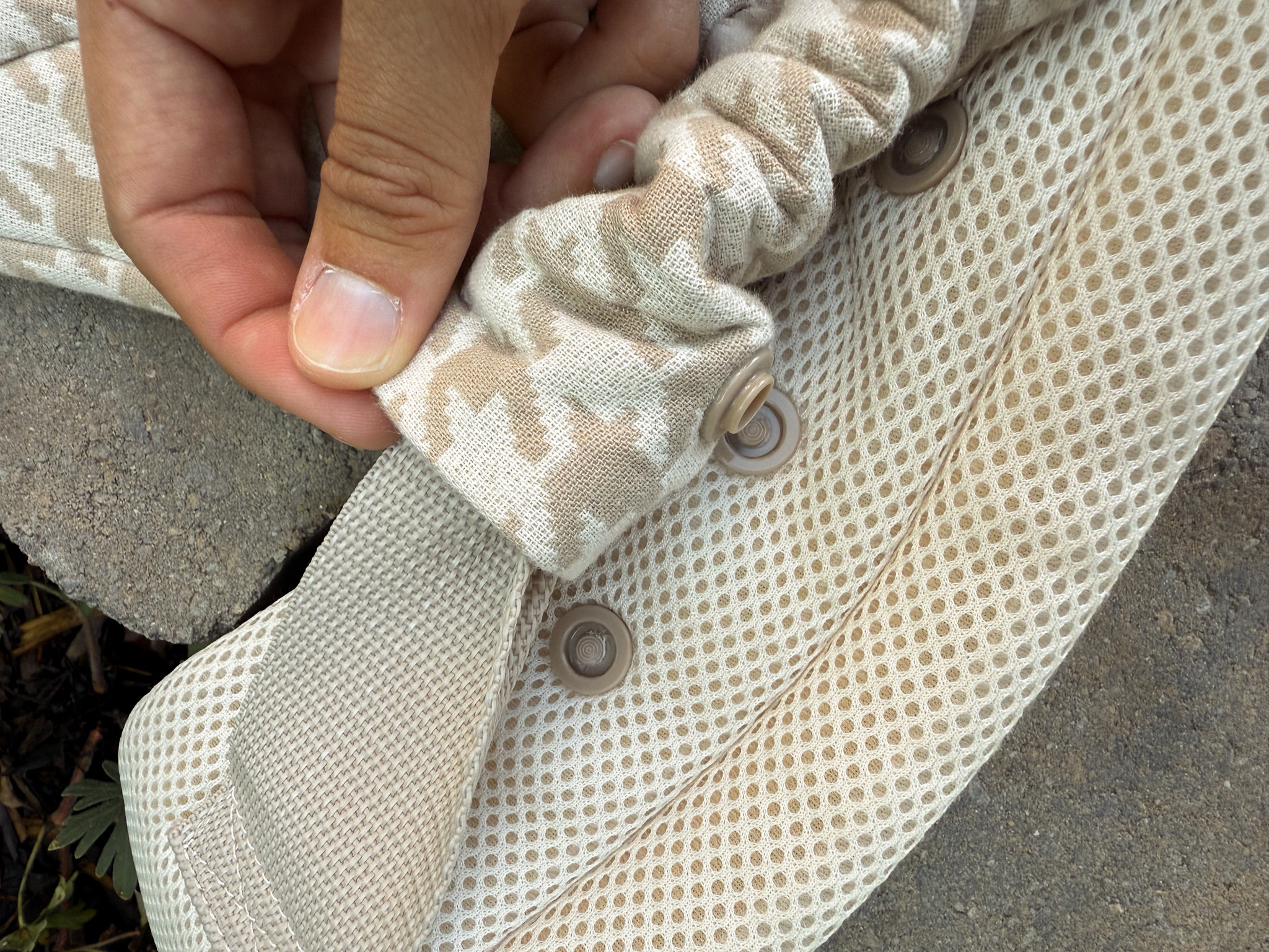 Adjust to the needs of your growing baby with durable snap/button adjustments in the seat, and a chest clip attachment for both comfort and safety while performing the back carry. Not to mention the fabric hook for your keys, wallet, or even a dog leash, and a mesh waistband for breathability.